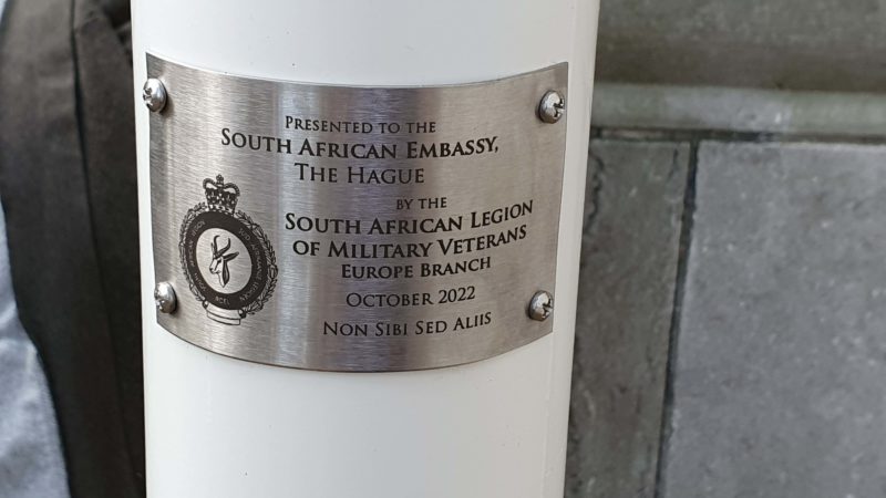 ‘Boilerplate’ of flagpole presented to SA Embassy, The Hague, in 2022