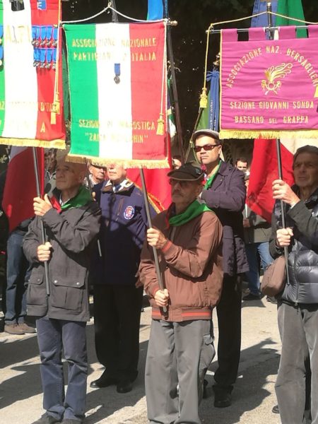 “I am very proud to carry on the values of resistance and anti-fascism. My cousin was killed by the Germans in Marostica, near Bassano del Grappa. He was a partisan. An uncle – for me as father – was a military man and was deported and spent two years in a concentration camp in Germany and suffered hunger and beatings. For me it is a duty to remember all those men who have been killed because I was born free! Your presence today was important: you reaffirmed the fraternity, today as yesterday.”