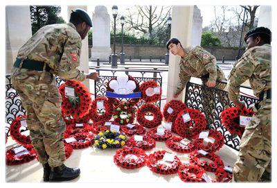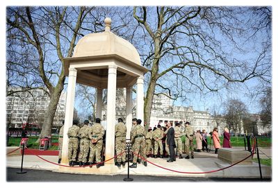 LONDON, 13 March 2017 –Mother Nature clearly smiles on the Commonwealth. On Monday, for (about) the fourth year in a row, the remembrance and wreath-laying ceremony at the Commonwealth Memorial Gates in Green Park, was blessed with (uncharacteristic for London) a mild sunny spring day.